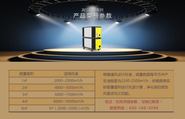 (1)90%除油烟效率,设备在实验室及额定处理风量测试。